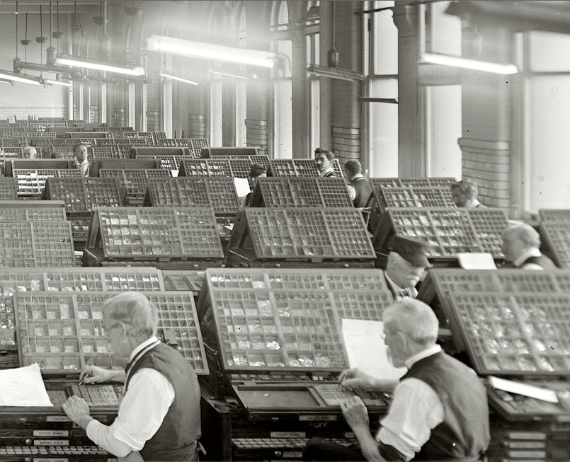 Hoje é tratada assim, sem este batalhão de tipógrafos. As letras já não são fundidas, mas sim representadas